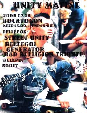 Nem feledni! 2006. március 25-én szombat délután a Rocktogonban fellép a Generator (Bad Religion tribute), a Belfegoi, és a Street Unity a Unity Matiné rendezvénysorozat keretein belül! Megjelenés kötelező! Kezdés kb 15.30-kor!