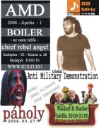2006. március. 27-e, Fiksz Rádió - Páholy. Téma: AMD - A háború borzalmai... A zenekar neve Anti Military Demonstration-t jelent. 1987-ben alakult punk-hc formáció, kik a katonaság és a háború borzalmairól zenélnek. Alakulásukkor a zenekar tagjai: Sotár (ének); Kiskovács (dob); Cséb (basszusgitár) és Füleki Sanyi (gitár). Késobb Sík (basszusgitár) csatlakozott a zenekarhoz. 1991-ben két albumuk jelent meg. Az elso címe A háború borzalmai, sot még rosszabb címen a 3Sztár kiadásában. A második Ne vonulj be! címen a Fekete Lyuk kiadásában. Az AMD 1993-ban feloszlott Sotár halála miatt, de 1994-ben újra összeálltak és Cséb vette át az énekesi szerepet. Füleki Sanyi is kilépett és helyette Lorke gitározott. 1995-ben jelent meg utolsó lemezük Túlélok címen.