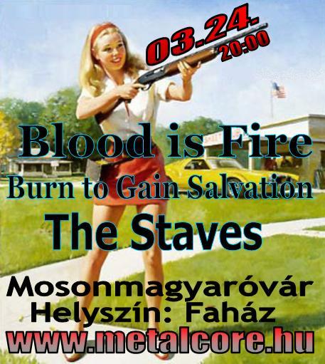 Változás történt a mosonmagyaróvári Blood is Fire koncert időpontját illetően: nem most szombaton, hanem egy nappal hamarabb, 2006. március 24-én, pénteken lesz! A helyszín nem változik, a Faházban játszunk a Burn To Gain Salvation és a The Staves társaságában! Reméljük mindenkihez időben eljut a hír, akit érdekel a buli!!