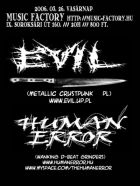 2006. március 26-án,vasárnap a lengyel Evil fog játszani a Music Factoryban (Budapest, Soroksári út 160.)! A Selfhate és az Infekcija tagok által összehozott banda először csak projectként indult, de mára igen aktív lett. Erőteljesen metal hatású hardcoret nyomnak, amiben ott vannak az ős-punk gyökerek is és néha még egy-két grind rész is belefér. Egy biztos, összekevertek mindent, ami súlyos és kemény, úgyhogy HC/punk és metal arcoknak is egyaránt bejöhet a zenéjük! Az est egyetlen hazai fellépője a budapesti Human Error lesz, akik a nemsokára megjelenő Profane Existence-es új LP dalai mellett néhány vadiúj számot is nyomnak majd! Kezdés: 20.00-kor, belépő 800 ft.