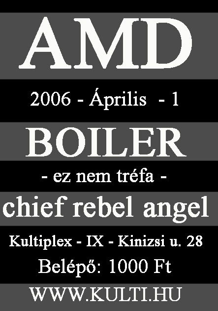 2006. április 1-én újra összeáll a legendás AMD zenekar. Klasszikus felállás lesz új énekessel, aki nem más, mint Csiszi a Kevés zenekarból. Sok régi nóta lesz a klasszikus időből. Az estén fellép még a Boiler, és a Chief Rebel Angel. Helyszín a Kultiplex lesz (Budapest, IX. Kinizsi u. 28.), a belépő pedig 1000 ft. Ja és lesznek meglepetés vendégek is!