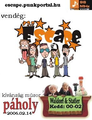 2006. február 14-én (Kedd), azaz ma Escape koncert lesz a PASO Ska Club szervezésében, Budapesten a Blue River állóhajón. Koncert után Miro (Slo) ska/reagge dj, majd a PASO Soundsystem (Lipi Brown, Krsa, Mouse) és a hajó gyomrában Simmer Down Chill Out terem (roots, dub, babzsákok, fáklyák, kivetítő).