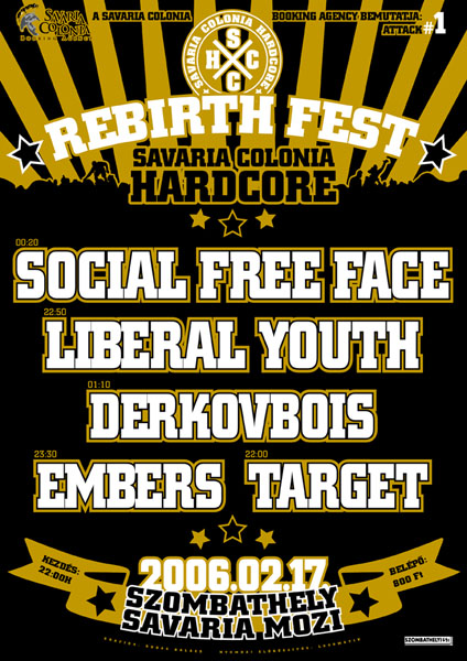 A Savaria Colonia Booking Agency egy új kezdeményezés Szombathely városában, amely egy biztos alapra építkezik. Ez az alap pedig nem más, mint a Savaria Colonia Hardcore. Lassan közeleg az a dátum, amellyel kezdetét veszi a helyi hardcore élet történetének egy új szakasza. Ez az alkalom pedig természetesen a legmeghatározóbb Colonia csapatok fellépésével megrendezésre kerülő Savaria Rebirth fesztivál lesz 2006. február 17-én a Savaria Moziban. Bővebben...