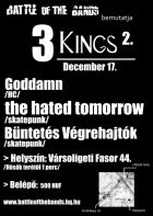 Szombaton, 2005. december 17-én a Battle of the Bands bemutatja a 3 Kings 2. felvonását. Fellép a Goddamn, hardcore zenét játszó banda, a the hated tomorrow, skate-punk muzsikával, s végül de nem utolsó sorban a Büntetés Végrehajtók is színpadra lépnek, szintén ska-punk zenéjükkel. A helyszín a városligeti Fasor 44. (Hősök terétől 1 perc). A belépő 500 Ft.