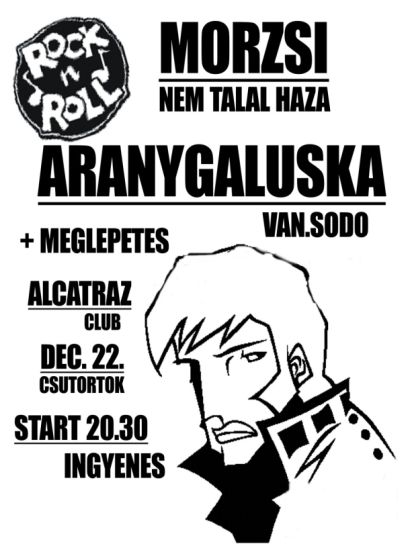2005. december 22-én, csütörtökön Hajdúszoboszlón szeretettel várunk mindenkit az Alcatraz-ba, ahol egy remekbe szabott kis punk est lesz megtartva. A zenéről két helyi zenekar gondoskodik a Morzsi Nem Talál Haza és az aranyGaluska van.sodó. Szervezés alatt áll egy harmadik meglepetés zenekar is. A belépés természetesen ingyenes, kezdés 20.30 körül várható.