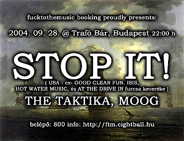 27-én, holnap este a pesti Trafó Bárban játszik az amerikai Stop It! a The Taktika, valamint a Moog társaságában. A kezdést sikerült előbbre hozni, így 21.30-kor kezd az első zenekar pontosan. Íme egy rövid bio a zenekarról: