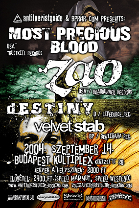 A Most Precious Blood turné vendégzenekara a német, hazánkat már többször is megjárt Destiny, akik új albuma, a „The Tracy Chapter” gyilkos keveréke a Poison The Well szerű dallamos vonalnak és a tipikus 21. századi német metalcore-nak.