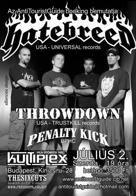 Fellépők: az Universal records-os Hatebreed (USA), a Trustkill records-os Throwdown (USA) és magyar előzenekarként a Penality Kick.
