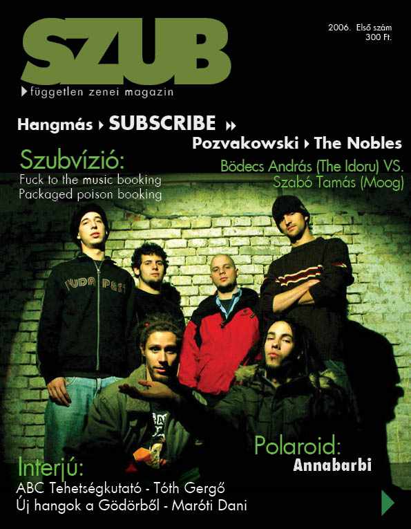 A SZUB magazin célja, hogy bemutasson nektek izgalmas, underground zenekarokat. Ezenkívül olyan embereket, csoportokat mutatunk be, akik lehetővé teszik számotokra, hogy minél több alternatíva közül válaszhassatok a hazai zenei életből. Interjú azokkal, akikről nem sokat hallunk a médiában, pedig megérdemelnék. Bemutatunk koncert és buli szervezőket, zenei honlapszerkesztőket, vetítősöket és még sok más érdekes embert vagy csoportot, akiknek valami közük van a szubzenéhez. A tartalomból: