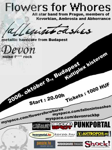 Először is, 2006. október 13-án, pénteken hazai pályán fogunk színpadra lépni a százhalombattai IKSZ klubban nem kisebb nevekkel, mint a The Idoru és a Gloaming. A belépő: 400 ft, klubtagoknak ingyenes. Kezdés 20.00-kor.