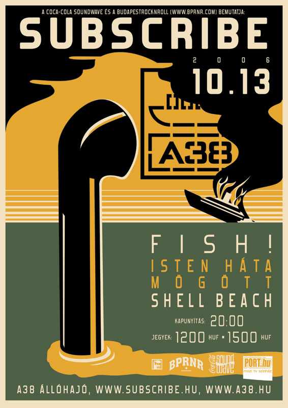 2006. október 13-án, pénteken az A38 hajón tartja a Subscribe az őszi nagyszabású buliját. A srácoknak a februári teltházas szülinapi koncertjük után sikerült egy nyár alatt meghódítani a román közönséget, játszottak odaát a Clawfinger és a Deftones vendégeként, amit egy 10 napos turné követett, hogy visszatérjenek ide és egy exkluzív estével zárják a nyári évadot. Olyan nívós zenekarokkal fognak fellépni, mint a pszicho-progresszív muzsikával és patafizikai eszmefuttatásokkal machináló Isten Háta Mögött, vagy a Fish!, akiknek ez lesz a már várva várt első lemezük bemutatója, illetve a budapesti supergroup, a post-emocore Shell Beach, kinek legénységében olyan neveket tisztelhetünk, mint az örökifjú Ivánfi Dani (ex-Blind Myself), Totik Zoli (ex-Velvet Stab), Mohácsi Matyi az Idoruból, Horváth Attilla Subscribe-ból vagy Somló (Pác) Pali. Az est különlegességét az adja, hogy a koncertről DVD is készül, valamint a Subscribe-tól már megszokott meglepetésekre is lehet számítani.