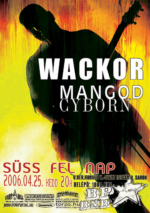 Fellép a régóta nem látott és hallott Wackor, a Mangod és a Cyborn. A Mangod zenekar kis meglepetéssel is készül, ha jók az információink. Kezdés 20.00-kor, a belépő pedig 1000 ft lesz.