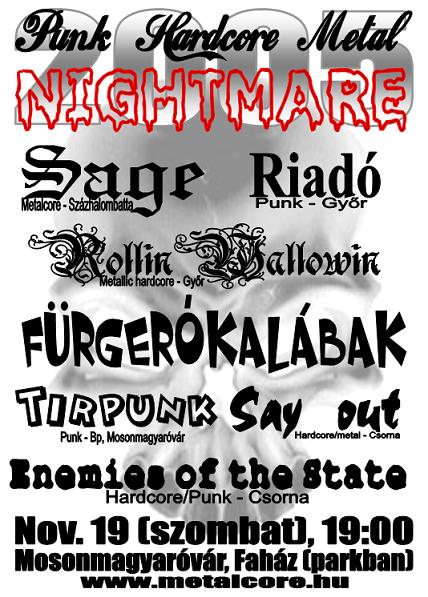 Most pénteken a békéscsabai, hc-punk Another Way és a salgótarjáni, hard-core banda, a Not This Time lép fel, valamint a Kings Of Jam isteni produkcióját láthatjuk. Szombaton fellép a várpalotai fiatal punk csapat, az Ellenérv, és a tatabányai Nem Visszaváltható. A buli folyamatosan szervezés alatt van, szóval további fellépőkre lehet számítani. Koncertek után reggelig dvd-nézés, hatalmas kivetítőn. |
