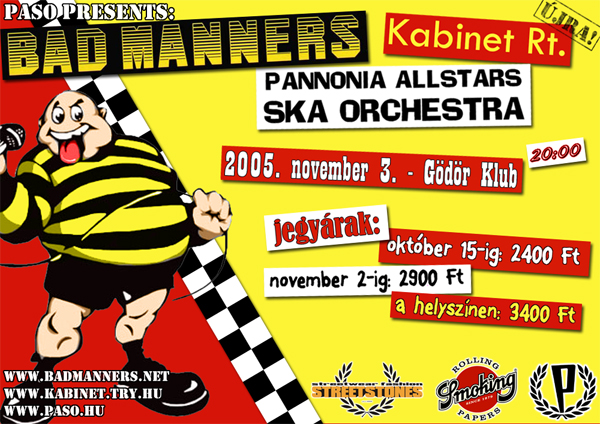 Sziasztok! Közeleg az óriási esemény! A PASO szervezési tevékenységének eddigi talán legnagyobb állomása, sokak álmának beteljesülése, hazai ska-történelmi esemény: 2005. november 3-án Budapesten lép színpadra a legendás Bad Manners!