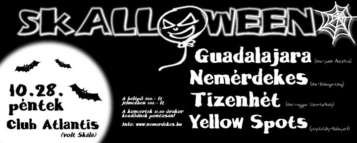 Idén is megrendezésre kerül a már-már hagyománynak számító Skalloween Zalaegerszegen. Az est folyamán a rendezvényen tiszteletüket teszik a savariai fenegyerekek, a Tizenhét. Eljön hozzánk Ausztria legjobb és legpörgősebb ska bandája, a gráci Guadalajara is, és a Skalloween hangulatát leghitelesebben reprezentáló budapesti psychobilly banda, a Yellow Spots. Természetesen a házigazda Nemérdekes is fellép a démoni eseményen, akiknél debütál Pati, az új gitáros és Hernyó, az új énekes. A belépő 800 forint lesz, aki jelmezben érkezik, annak pedig 500 forint. Punk és rocker jelmezzel ne is próbálkozzatok! De örülünk minden boszorkánynak, ördögnek, zebrának, batmannek, láncfűrészes gyilkosnak. Figyelem! A programok pontban 21.00-kor kezdődnek.