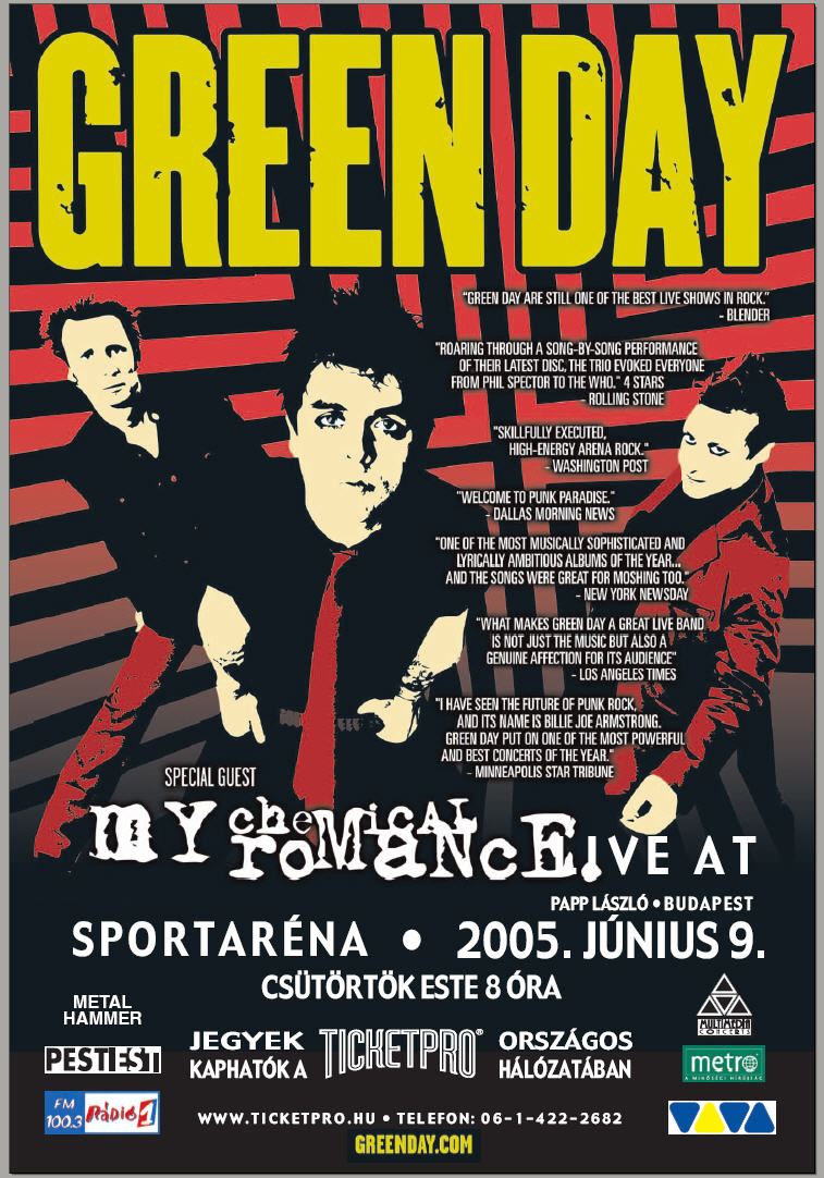 Örömmel jelentem be minden gumipunk-zene kedvelőnek a hírt: 2005. június 9., Papp László Budapest Sport Aréna, fellép: Green Day. További információk később...